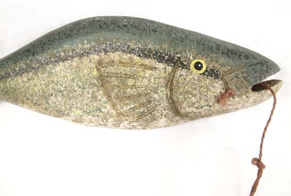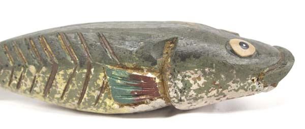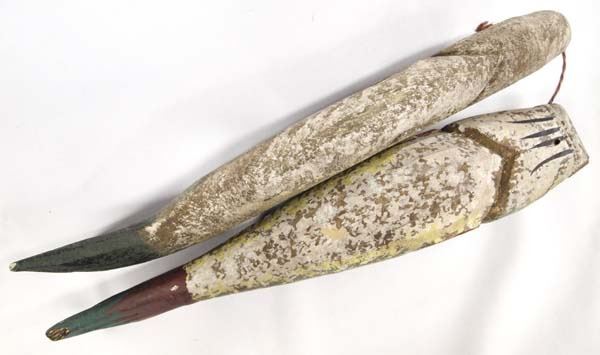 Pair of Wooden Fish Decoys, one trout and one catfish, longest measures 14.5''L x 4''W x 1.5''H