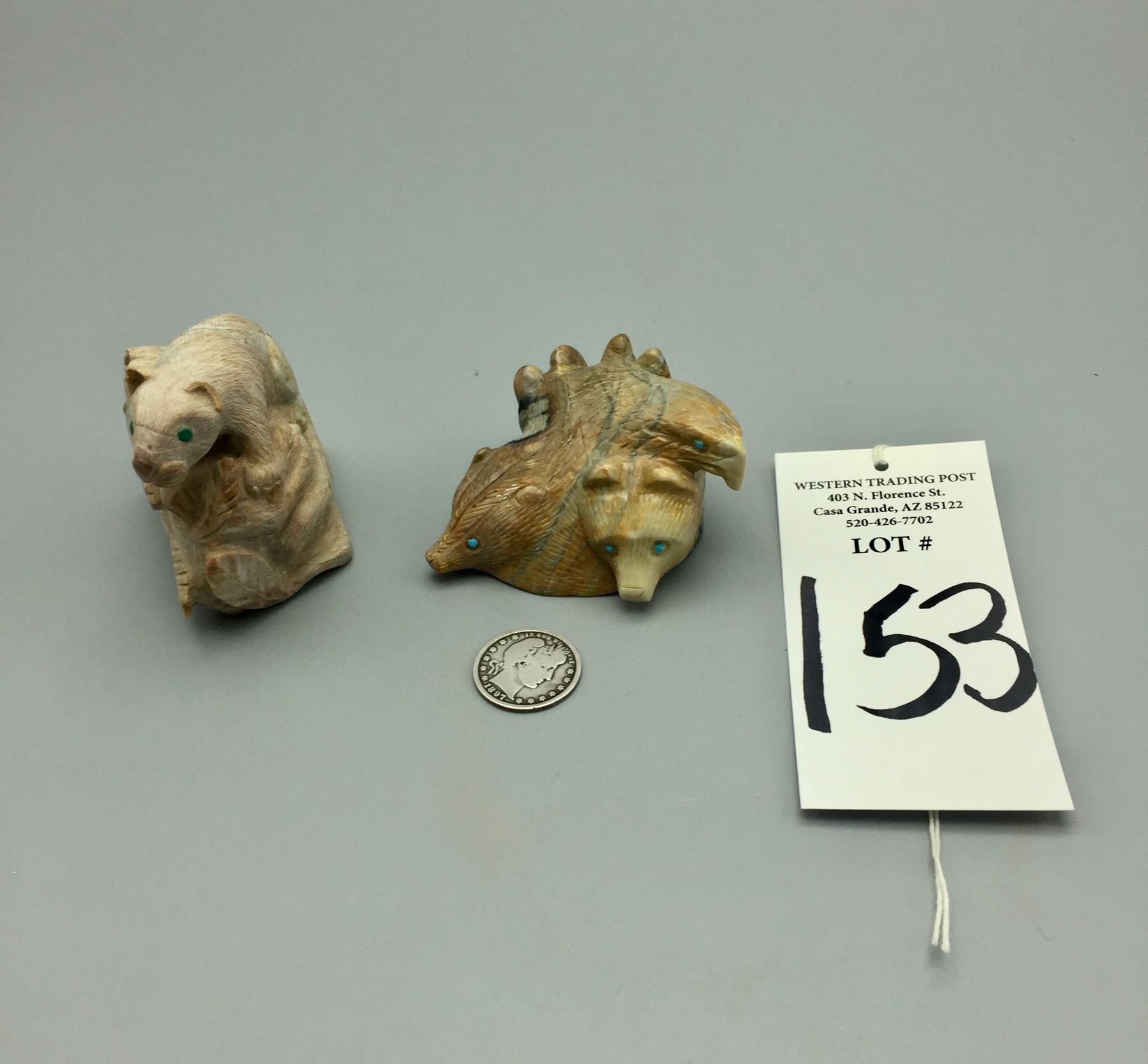 Maker: Willard Cheama and Michael Choble. Approx. Age: Fairly modern. Size: Fetishes range from 3” w and 1 1/2” to 2 1/2” h. Additional Info: Pair of Zuni fetishes. Condition: Good, New, old stock (NOS) from dealer who is retiring. Please look closely at the pictures - they are an important part of our description. Shipping: There will be a $5 handling / packaging fee for shipping this lot. The actual cost of postage will be added on top of that.