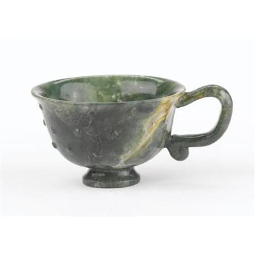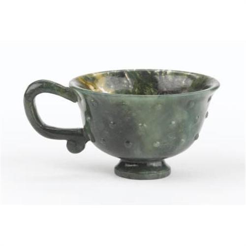 <B>A Pair of Agate Wine Cups</B></I><BR>The moss green agate with russet inclusions, decorated with three rows of studs around sides<BR>2 x 4 x 3-1/4 inches<BR><BR><b>Shipping:</b> Requires 3rd Party Shipping (<a target="_blank" href="http://www.heritageauctions.com/common/shipping.php">view shipping information</a>)