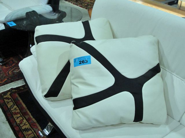 Pair of black and white leather throw cushions