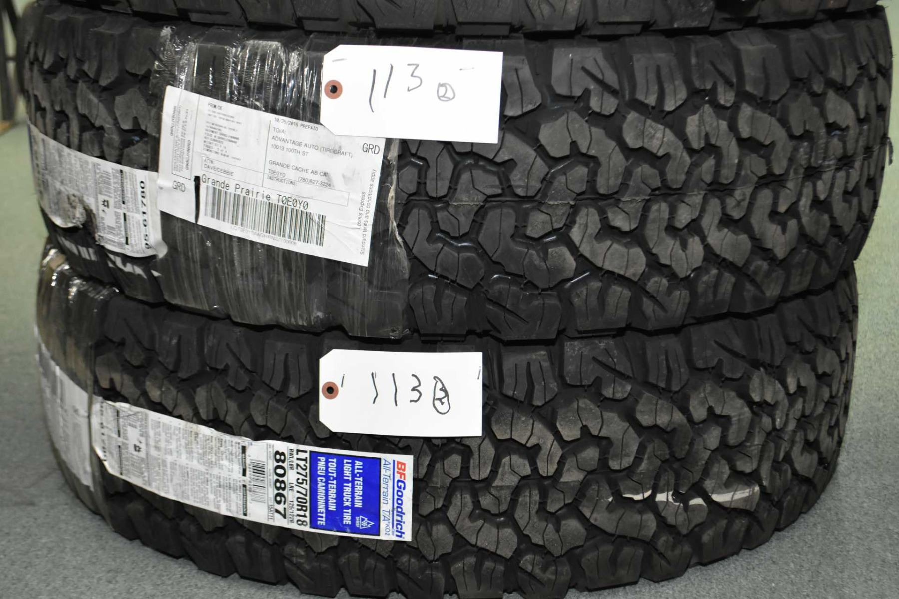 Pair of brand new B.F. Goodrich All-Terrain TA tires, LT275/70R18, #80867- AUCTION HOUSE WILL NOT PROVIDE SHIPPING FOR THIS ITEM. BUYER MAY ARRANGE THEIR OWN COURIER.