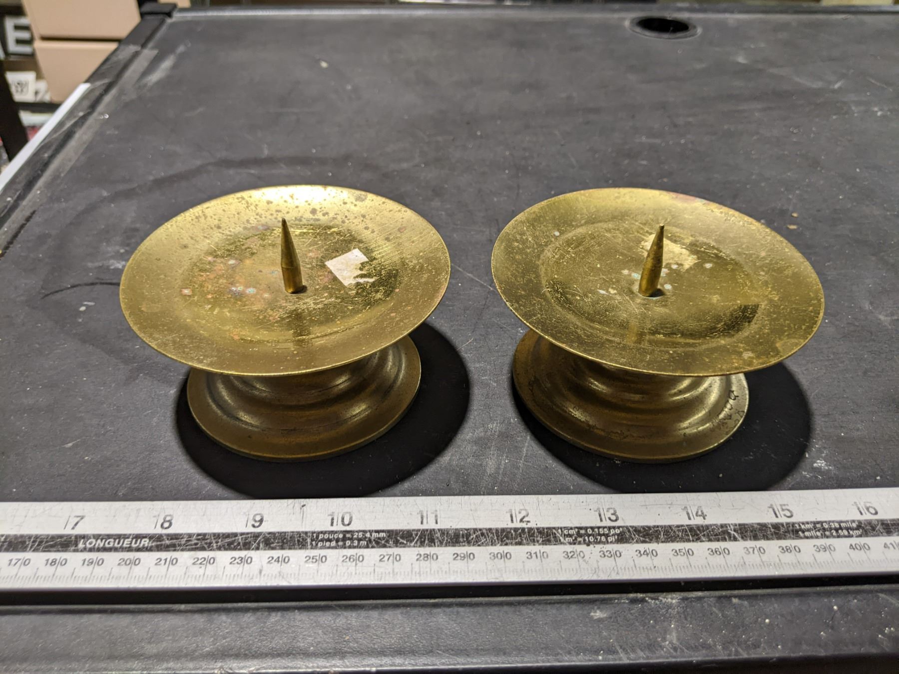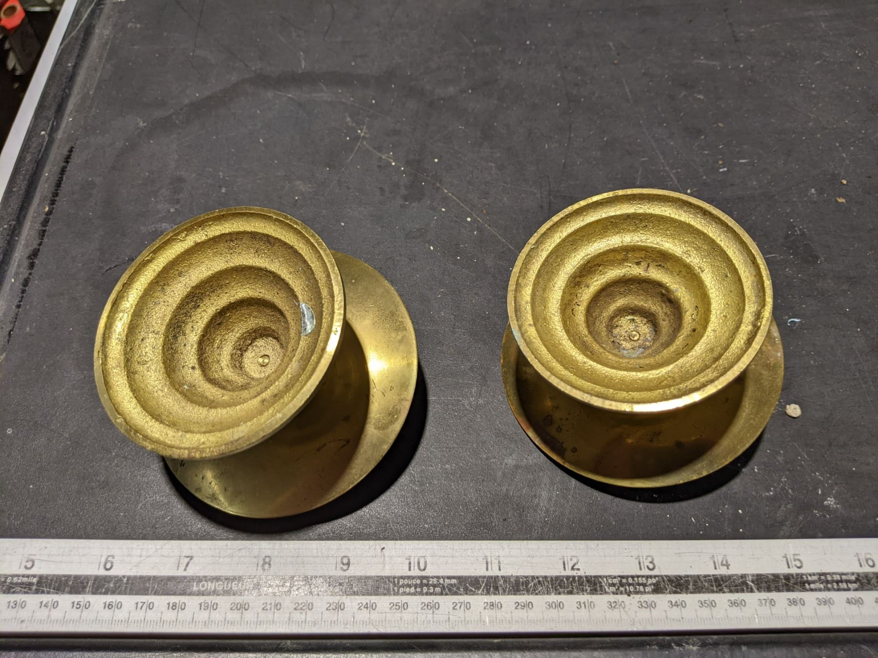 Pair of brass pillar candle holders - large and heavy