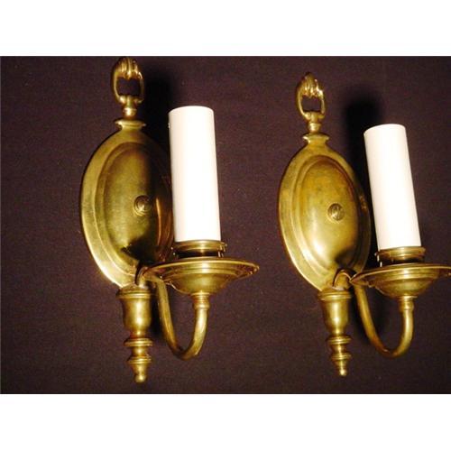Pair of single arm bronze sconces in excellent codition, rewired and ready to install .Dimension height 10 1/2" width 3 1/2 " depth 6".Antique lighting gallry.