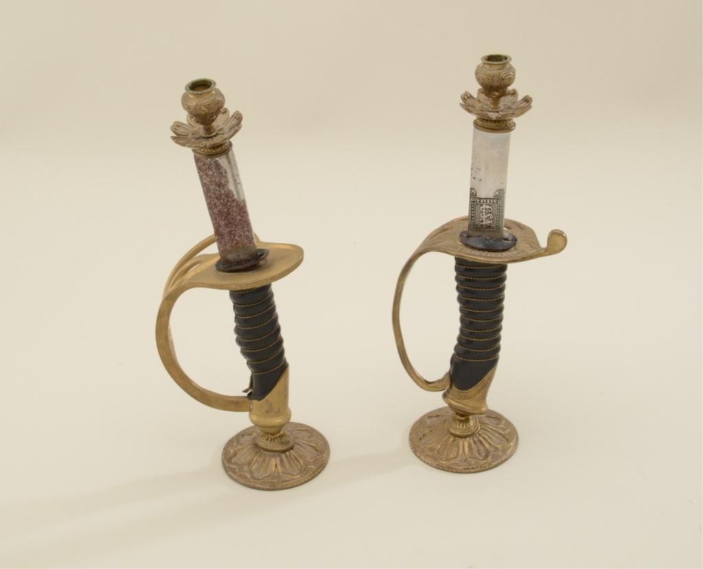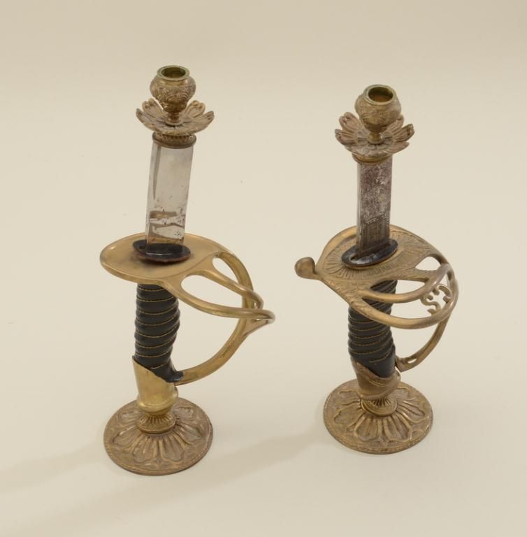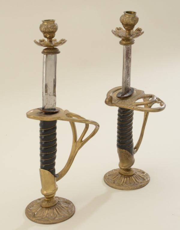 Pair of candleholders made from swords; likely done by Bannerman’s in the early 20th century; neat decorators. Est.: $175-$350.