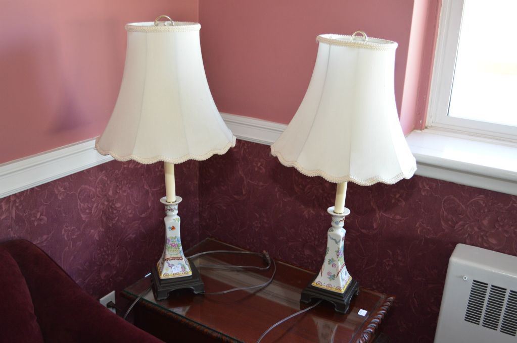 Pair of candlestick motif hand painted table lamps