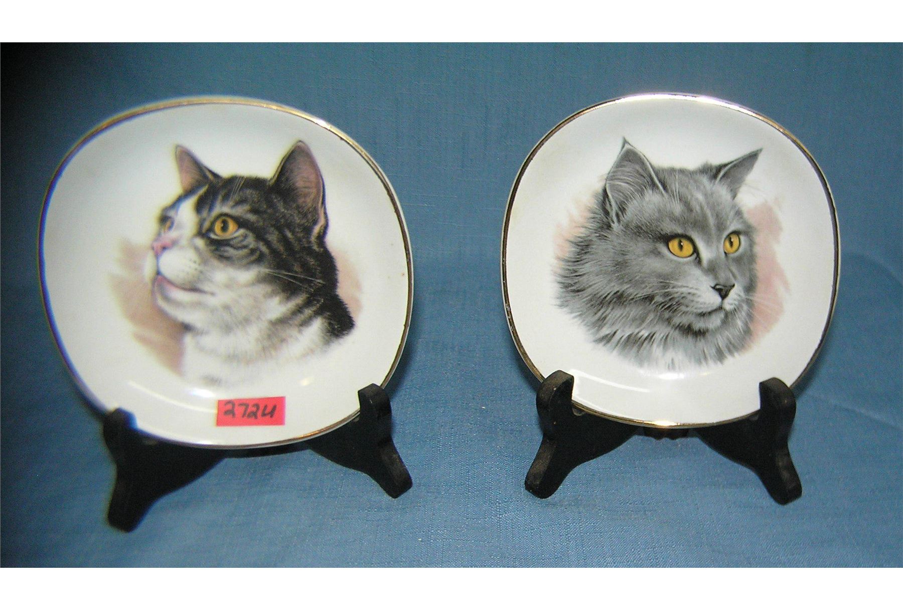 Pair of cat decorated dishes with stands by Weatherby of England est. value $75.00-$80.00