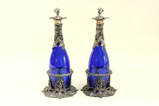 Fitted into matching stands. Approx. 14.5" H. Good condition.
