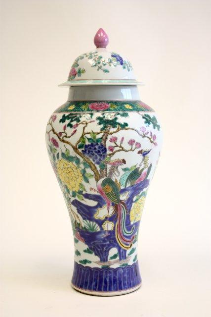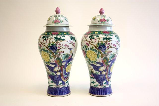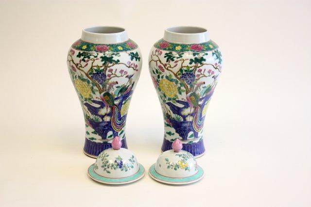 Pair of colorful porcelain covered jars