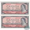 Pair of consecutive Bank of Canada 1954 Devil's Face $2 Choice UNC. BC-30b, Beattie-Coyne, S/N: F/B0