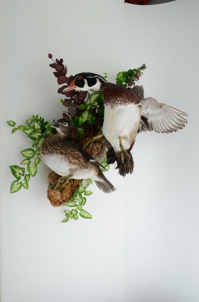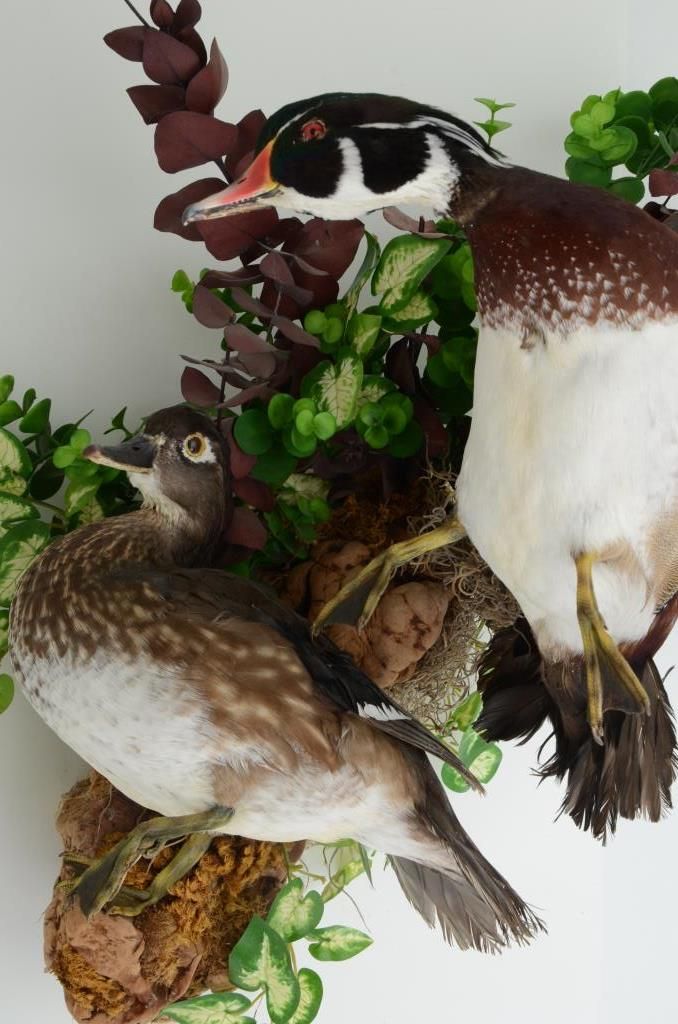 Pair of duck mounts on wood base for wall display in very good condition; beautiful action. Est.: $100-$200.