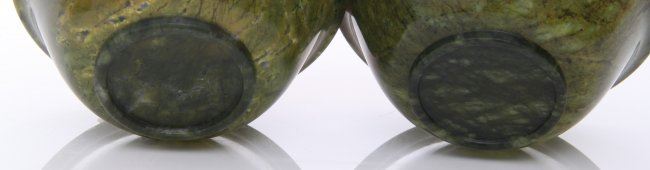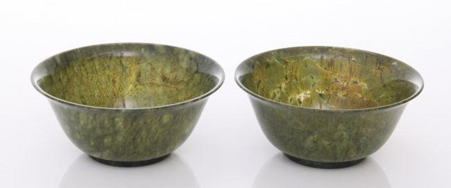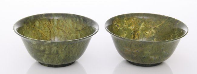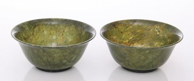 Pair of early 20th Century, Chinese spinach jade footed bowls superbly thin and of a magnificent translucent deep green coloration. SIZE: see attached ruler photo. Photos are part of the description representing the condition report and can be used for authentication prior to the sale date. Pangaea Auctions urges Bidder's to view all attached photos in detail.