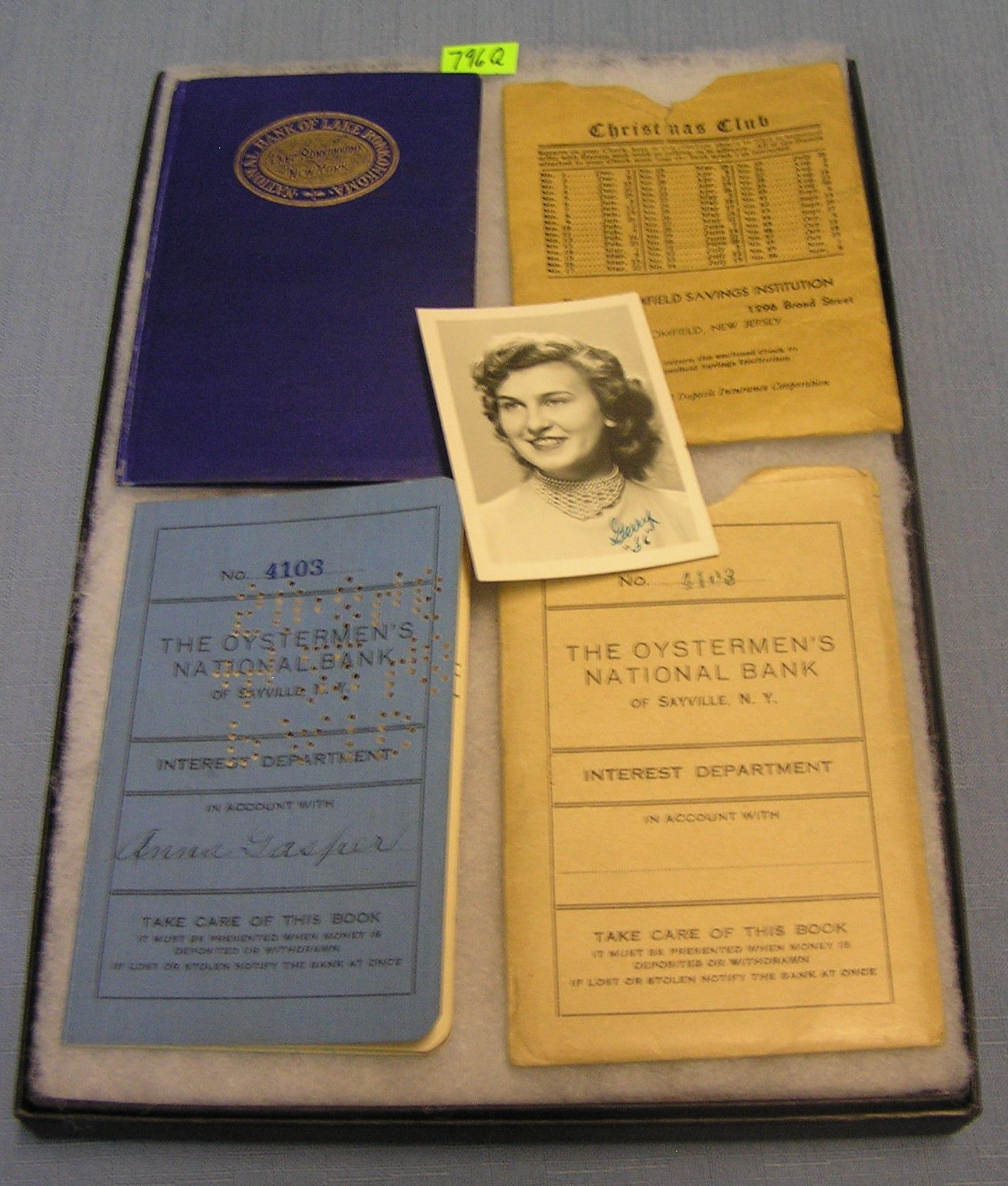 Pair of early LI Bank savings books includes Bank of Lake Ronkonkoma NY circa 1920’s-WWII Oysterman’s of Sayville 1930’s-WWII lot comes with original photo of owners niece dated 1936 $75.00-$100.00