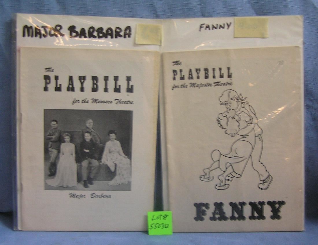 Pair of early Playbills includes Fanny and Major Barbara est, value $30.00-$35.00