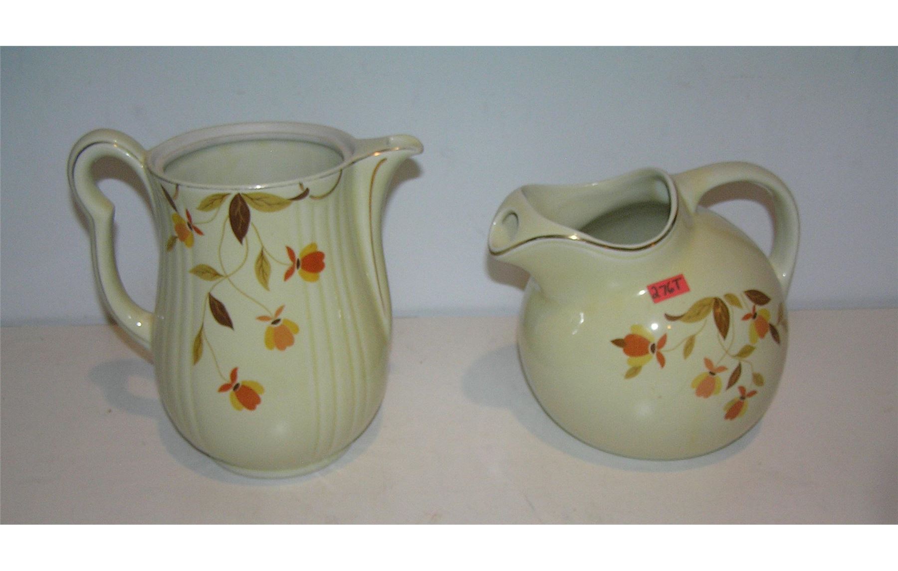 Pair of early leaf decorated pitchers by Hall's China circa 1950's est. value $125.00-$150.00