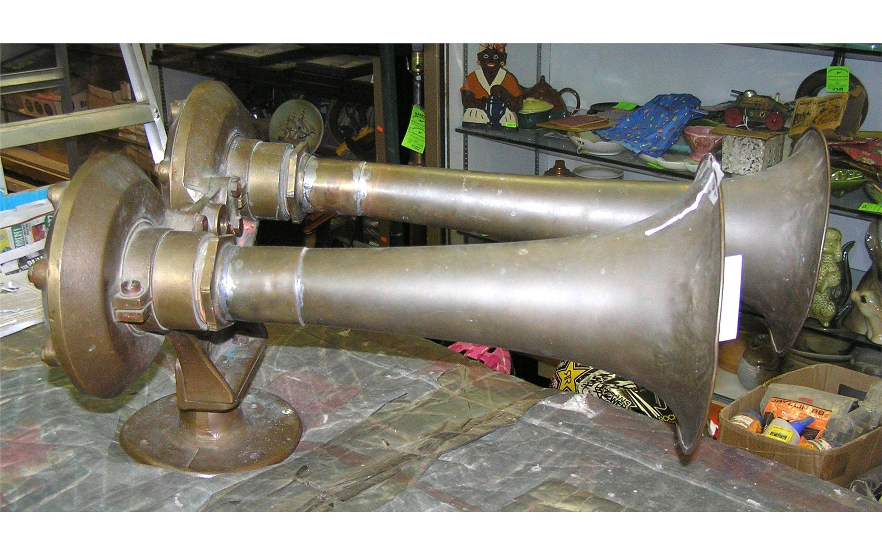 Pair of large solid brass fire department/railroad emergency horns circa 1920?s-30?s $1200.00-$1500.00