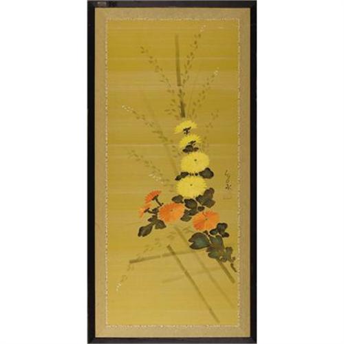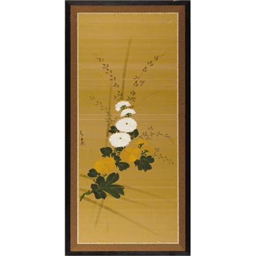 <B>A Pair of Framed Silk Scrolls<BR></B></I>One with white and yellow chrysanthemums and the other gold chrysanthemums<BR>36 x 18 inches (each)<BR><BR><b>Shipping:</b> Requires 3rd Party Shipping (<a target="_blank" href="http://www.heritageauctions.com/common/shipping.php">view shipping information</a>)