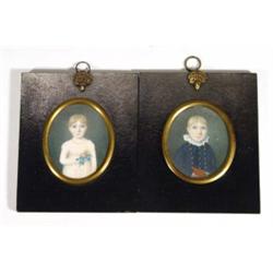 Pair of gilt and ebonised wooden framed portrait miniatures of children onto ivory, signed Dickson 1814 to backs, 7cm high