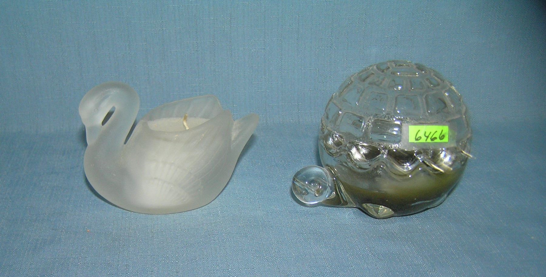 Pair of glass figural swan and turtle candle holders est. value $25.00-$30.00