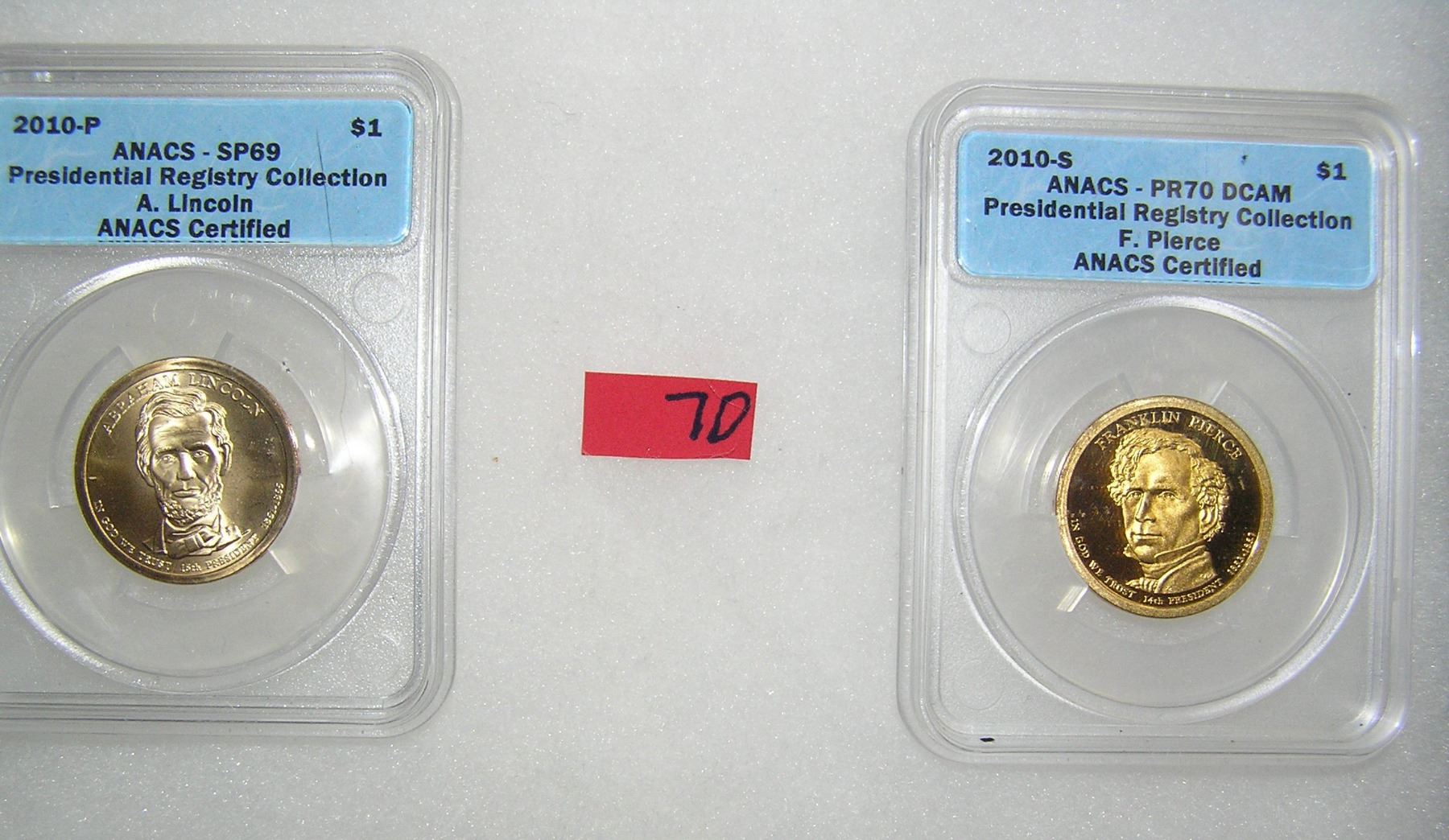 Pair of graded uncirculated Golden Dollar Presedential coins includes Lincoln and Pierce est. value $125.00-$150.00