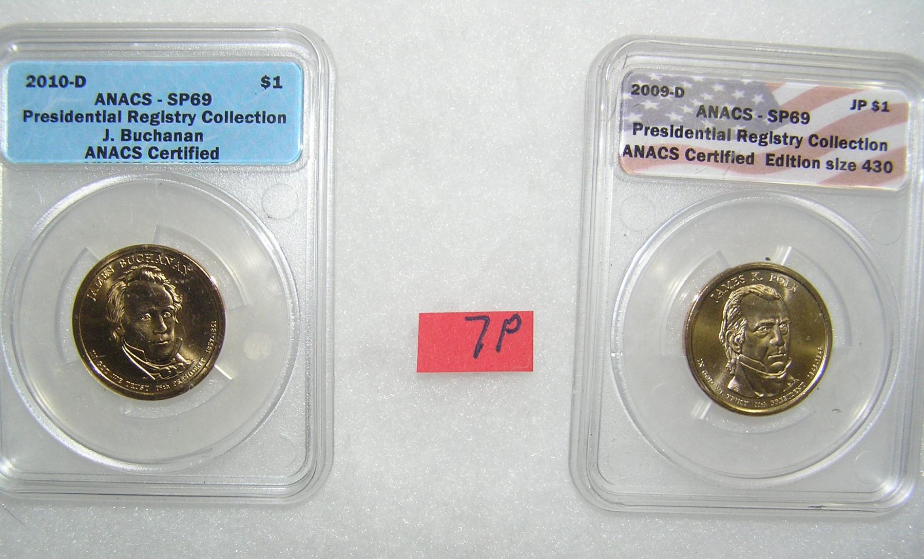 Pair of graded uncirculated Golden Dollar Presedential coins includes Buchanan and Polk est. value $125.00-$150.00