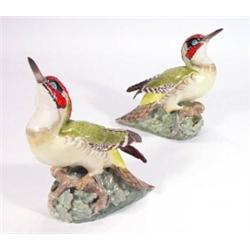 Pair of hand painted Ann Gordon porcelain woodpeckers on branches, marks to base, 20cm high…