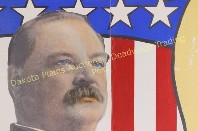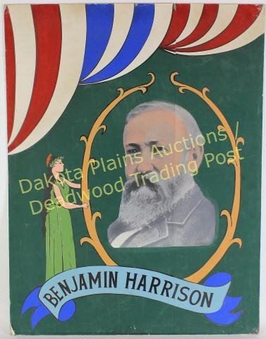 Grover Cleveland and Benjamin Harrison, from 2nd inauguration, both 36"X25", images of both men are clear, posters have some tack holes, portions of posters are hand painted. Est. 250-500