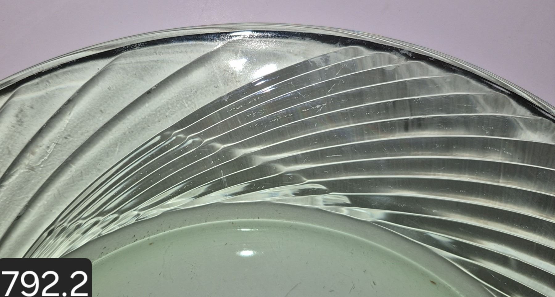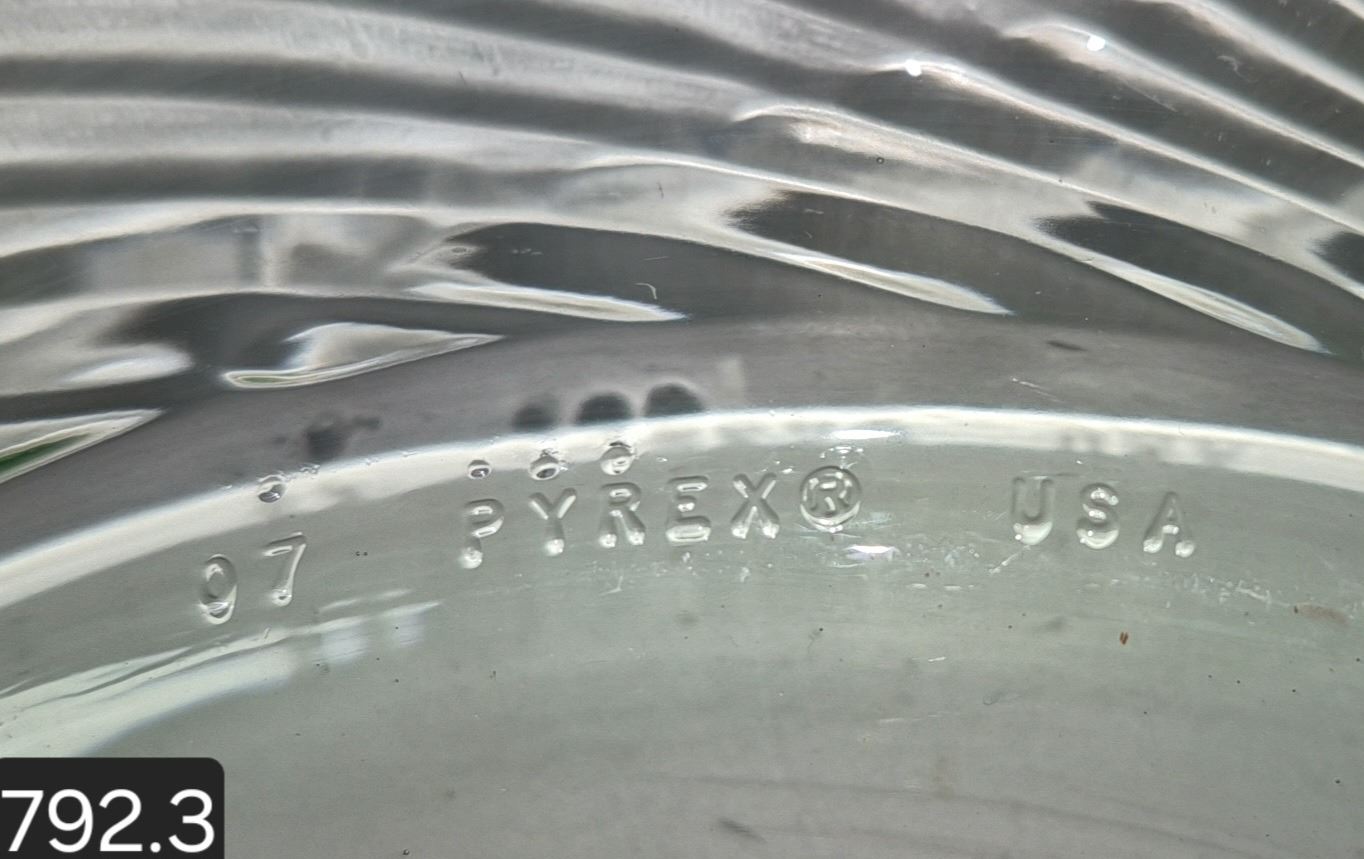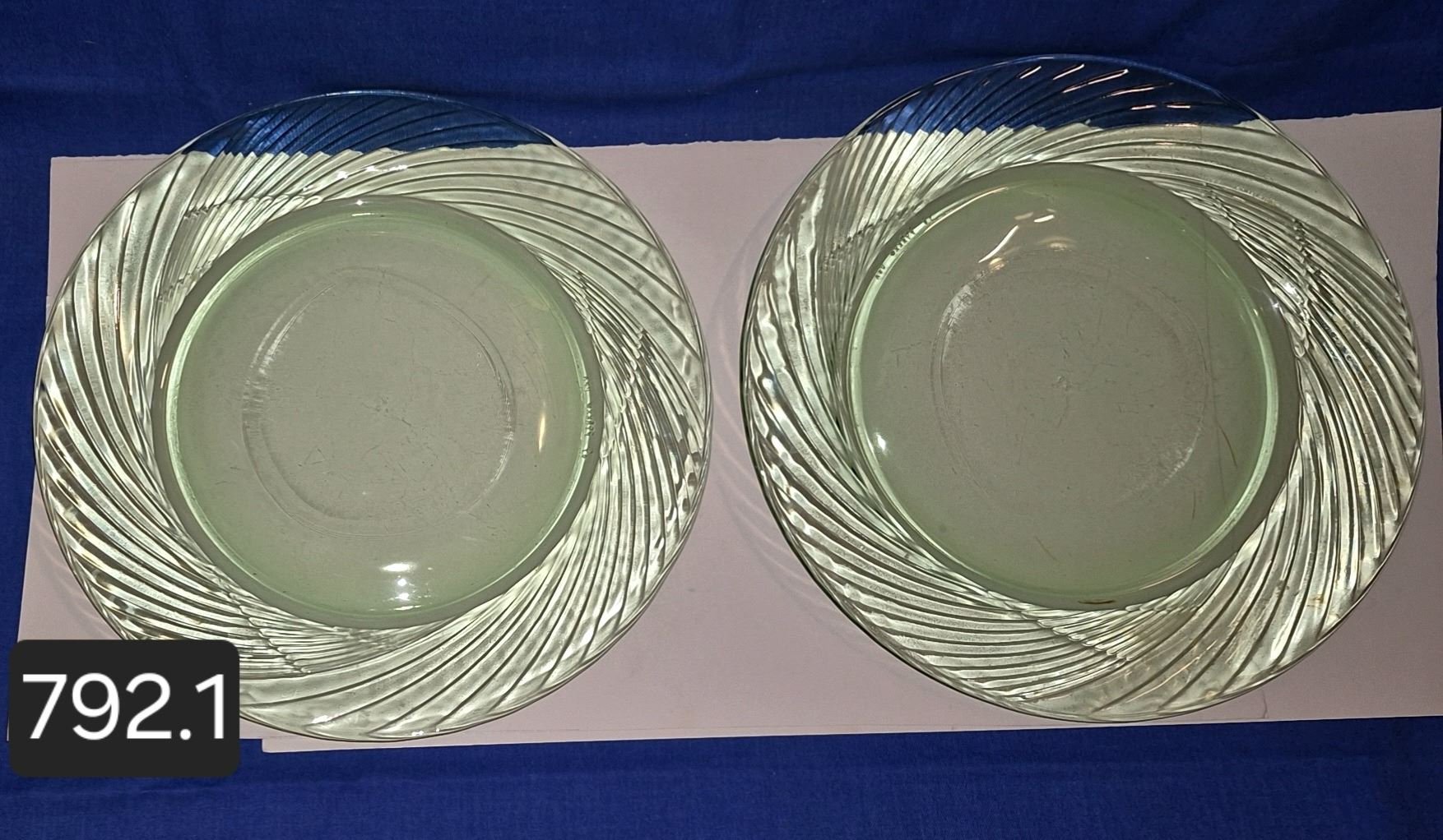 Pair of large 12 inch green glass Pyrex Festiva plates, no chips or cracks