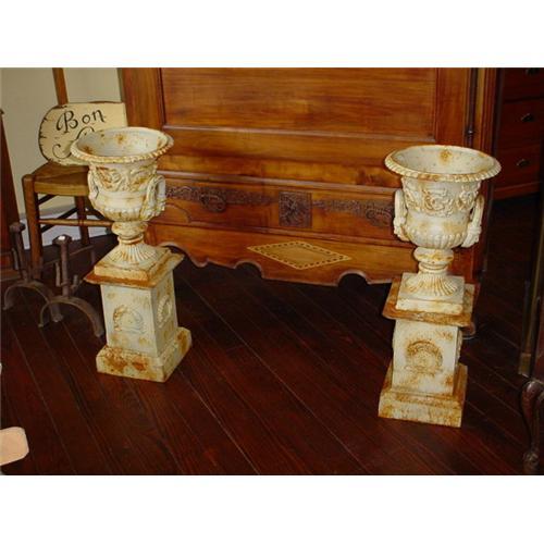 <tr><td>Title:Pair of large cast iron urns Vases Medicis</td></tr>