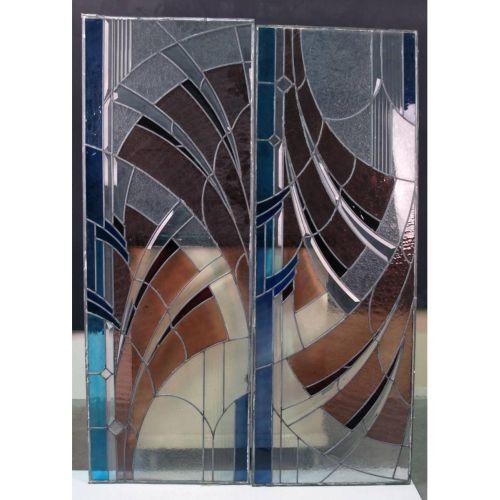 Pair of leaded glass windows (no frames) each 20" x 58"