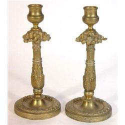 Pair of leaf and berry design circular base brass candlesticks, 23cm high…