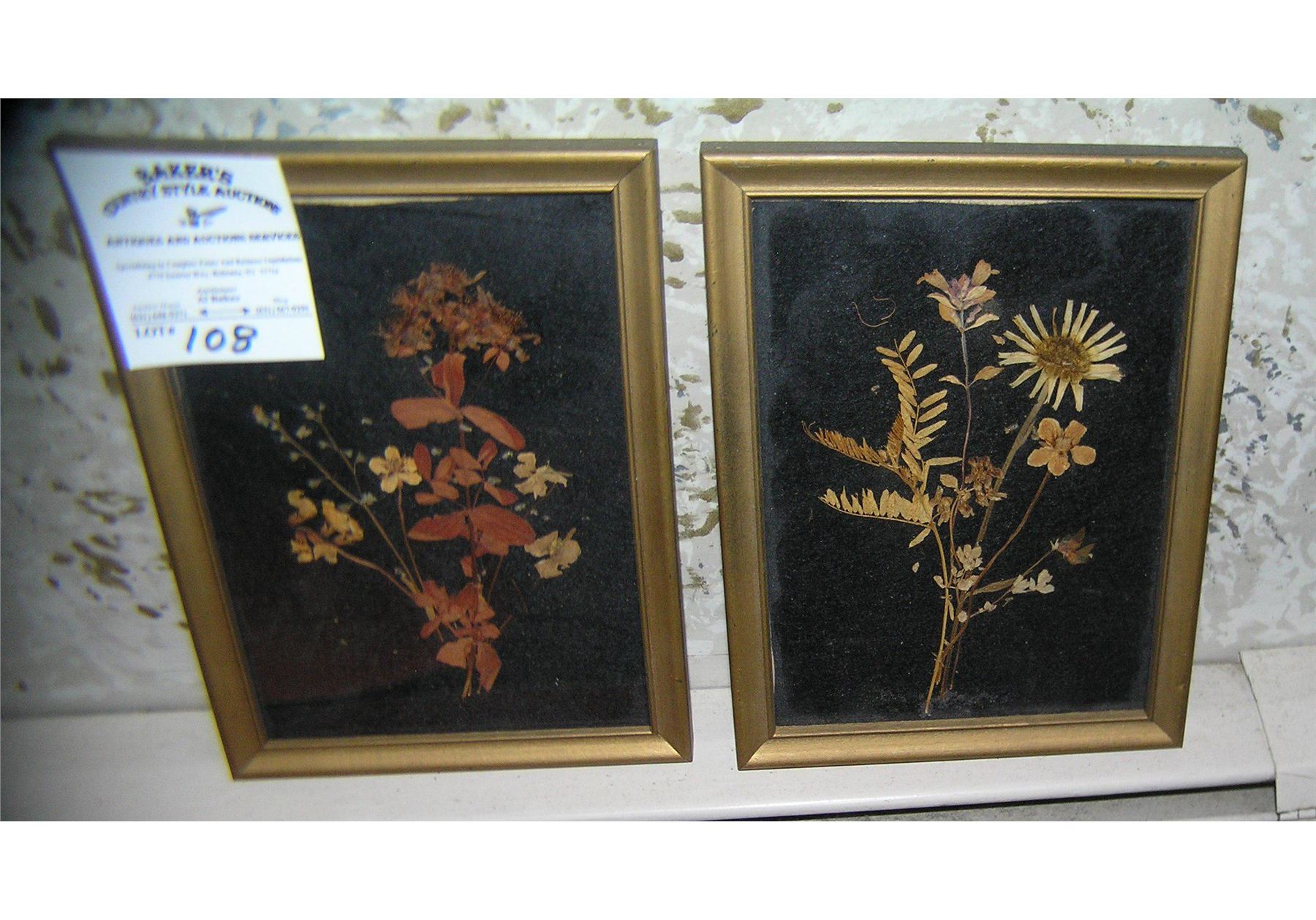 Pair of leaf decorated art pieces both framed est. value $40.00-$60.00