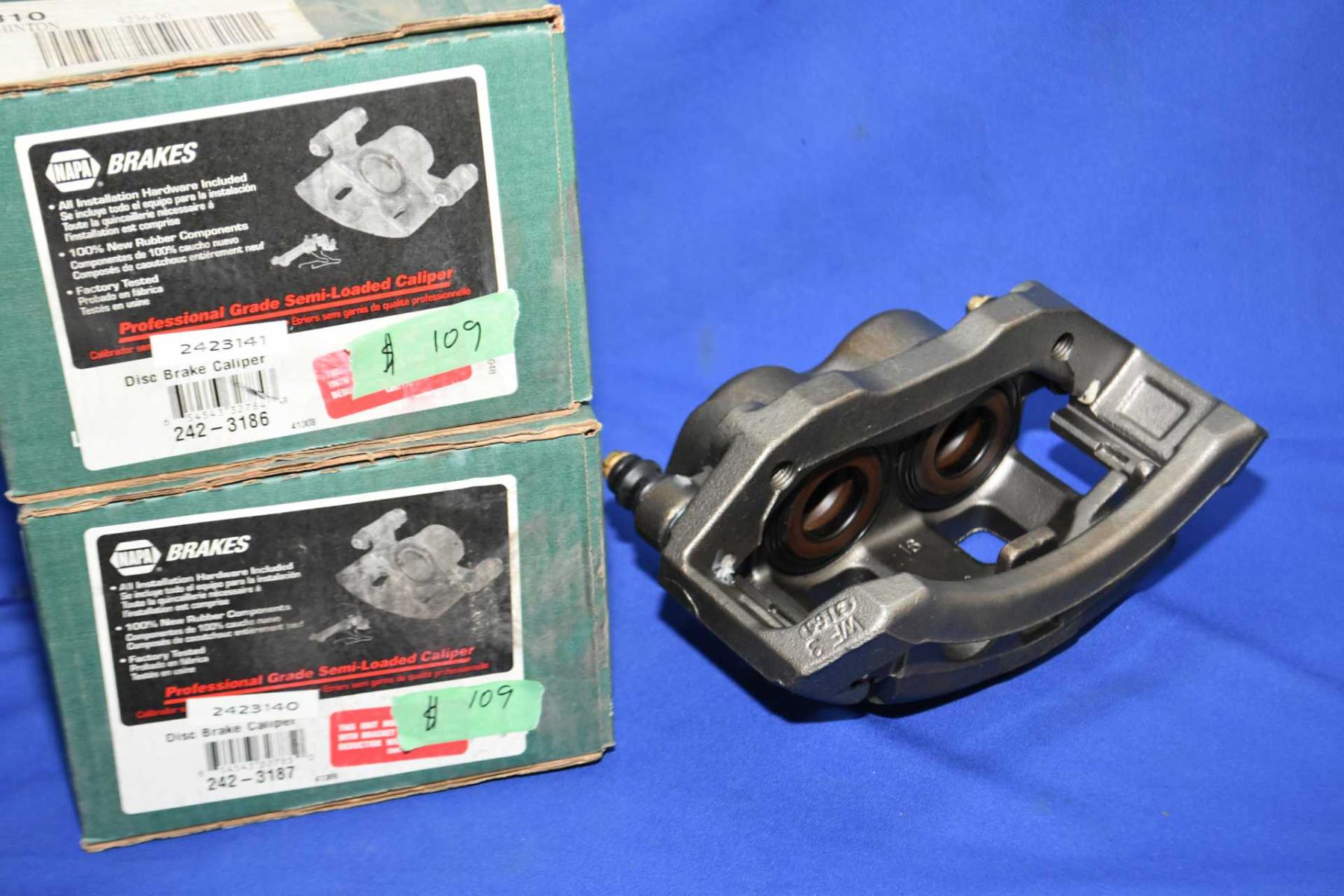 Pair of left and right new Napa inventory disc brake calipers #242-3140 and #242-3141 (retails $109.00 each) fits Dodge Durango and 1500 2002-2006- ITEM CAN BE SHIPPED THROUGH CANADA POST BY THE AUCTION HOUSE. SHIPPING AND HANDLING COSTS APPLY.
