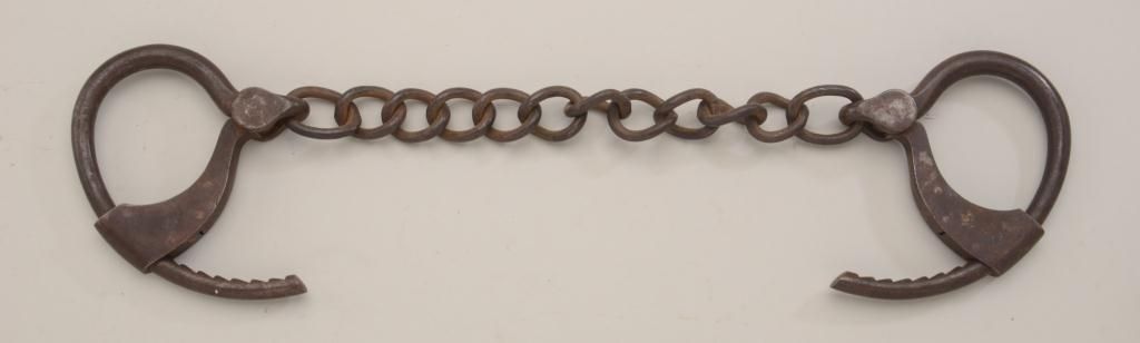 Pair of leg irons marked patented June 17 and July 17, no other markings, late 19th-20th century, probably Tower. Est.: $175-$350