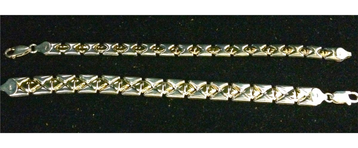 Both of these link bracelets are marked Italy and .925. They are approximately 7.25” in length. You get both for one price in this lot! Together they weigh 25.8 g.