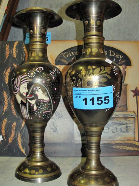 Pair of middle eastern brass vases