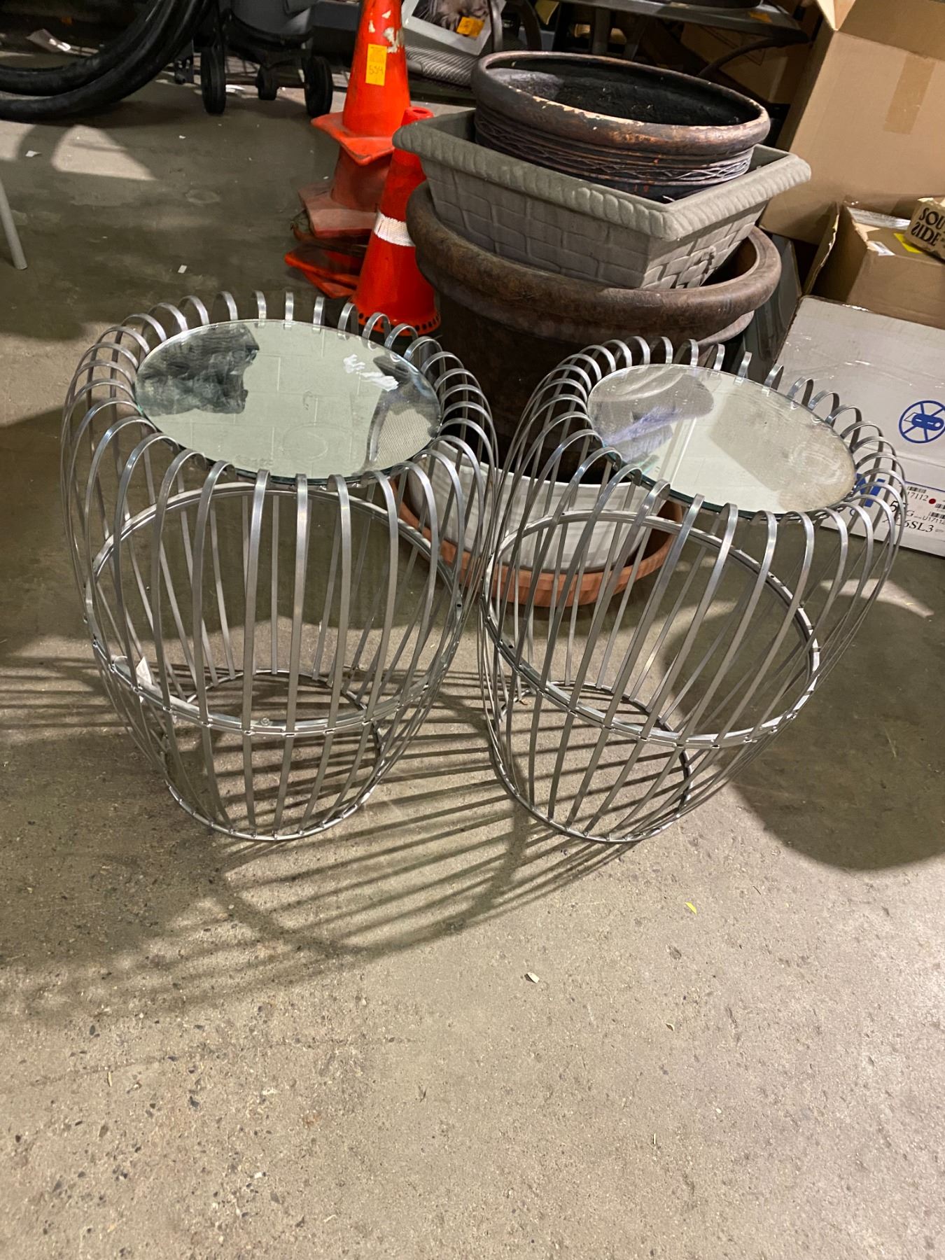 Pair of mirrored tables