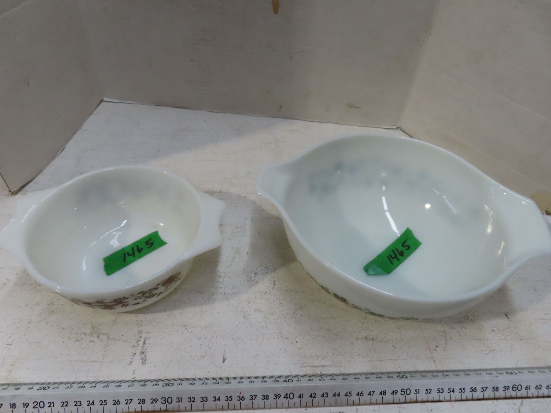Pair of mis matched pyrex bowls