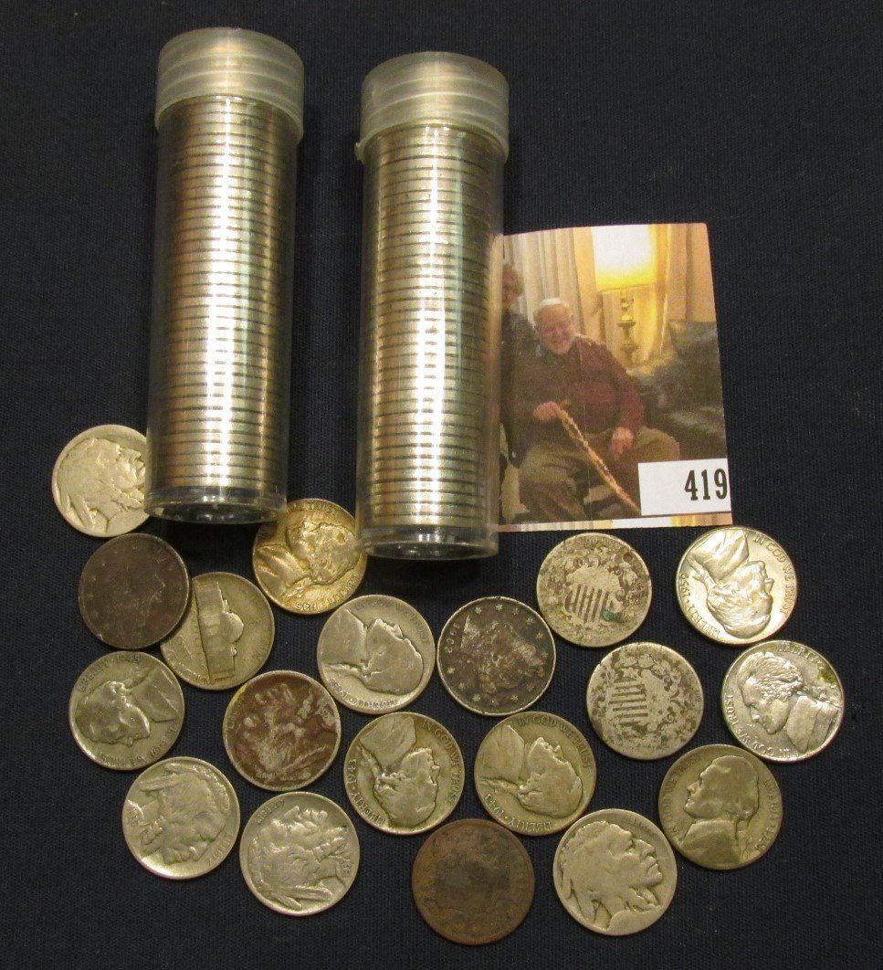 Pair of mixed date Jefferson Nickels in plastic tubes; pair of Shield Nickels; (3) Liberty "V" Nickels; (5) Buffalo Nickels; (7) World War II Silver Nickels; & 1959 D & 2000 D Jefferson Nickel, EF-AU.