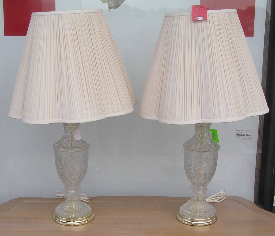 Pair of modern crystal table lamps with quality silk shades est. value $200.00-$250.00