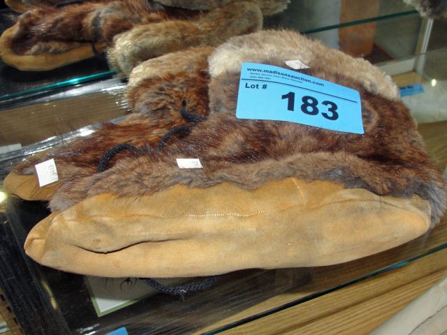 Pair of native rabbit fur mocchasins