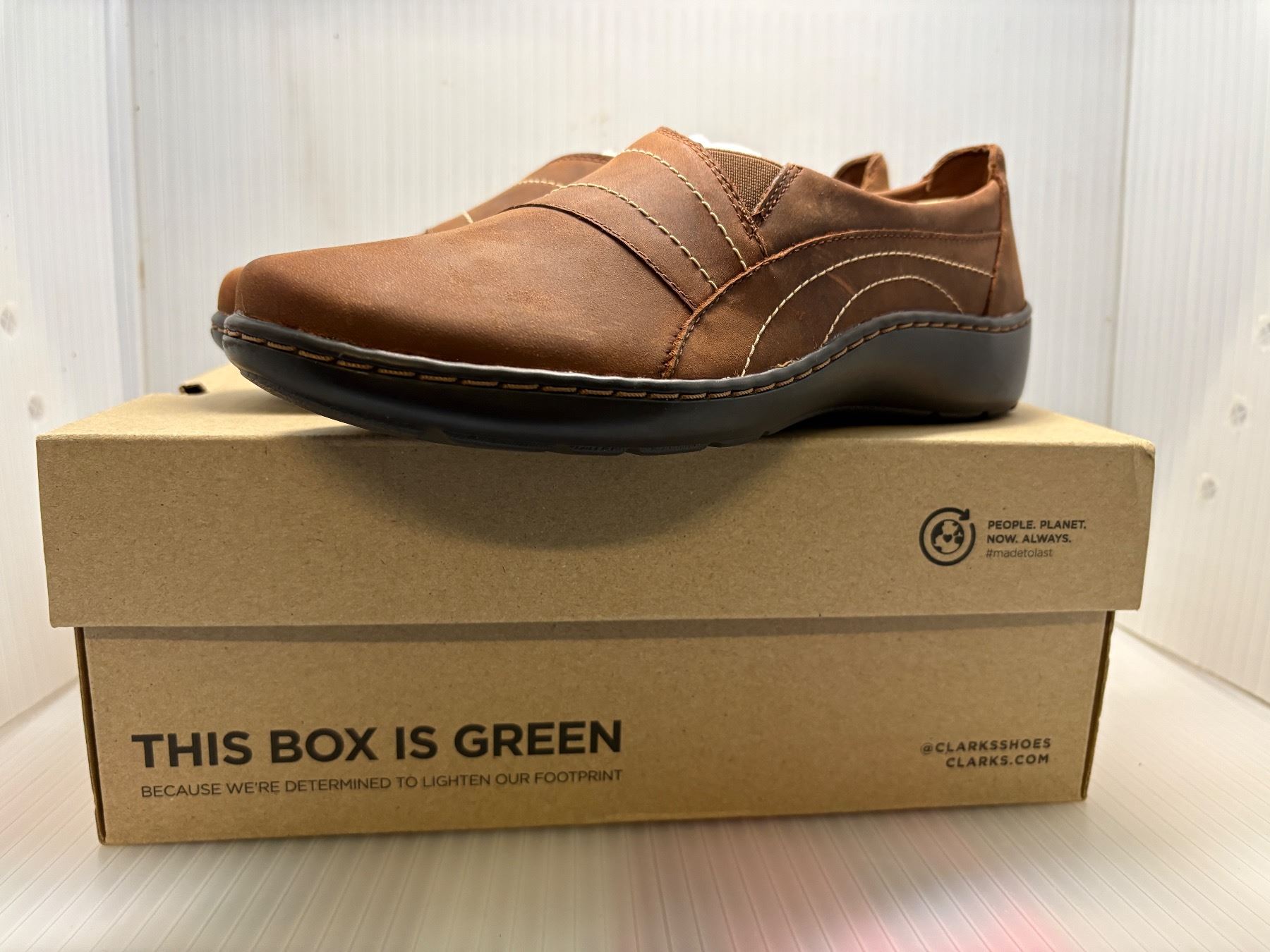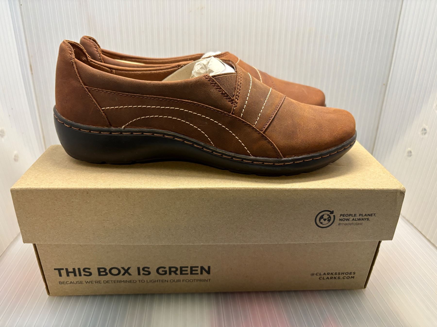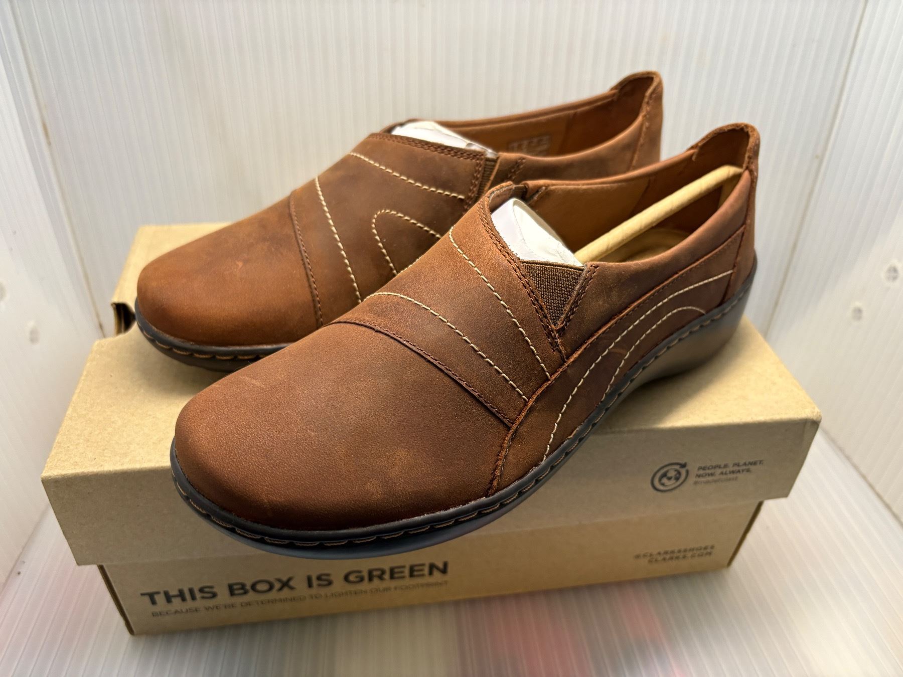Pair of new Clarks Collection dark tan leather shoes - size US 8 1/2 men's with box