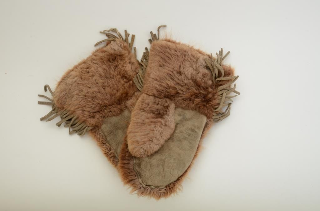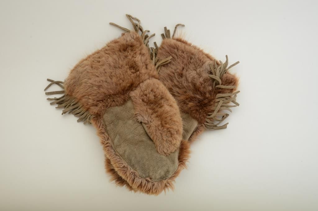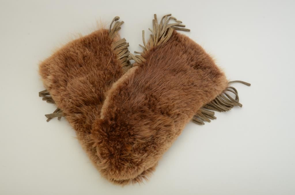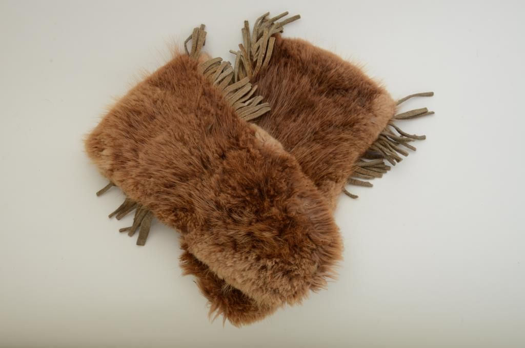 Pair of old beaver mitts with heavy fringe and trade cloth lining; overall good condition. Est.: $75-$125.