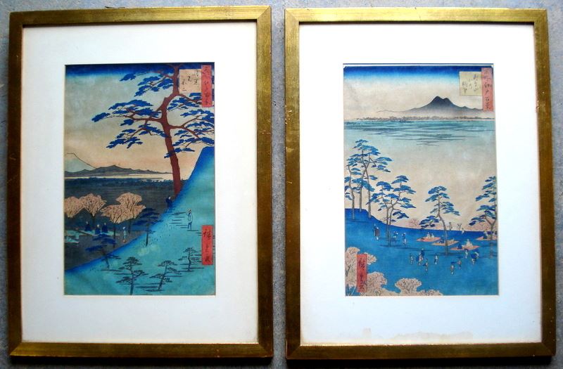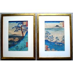 Pair of oriental hand colored lithographs - vibrant colors - minor staining to paper and matting. Both 8.25" X 12.5" in very good condition.