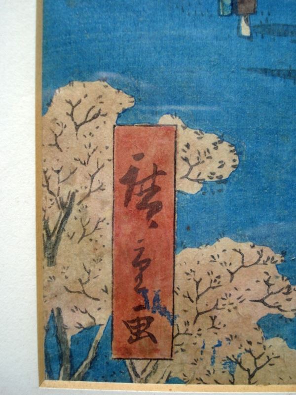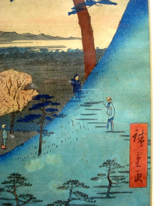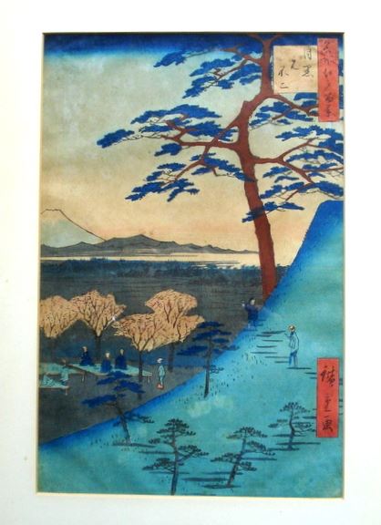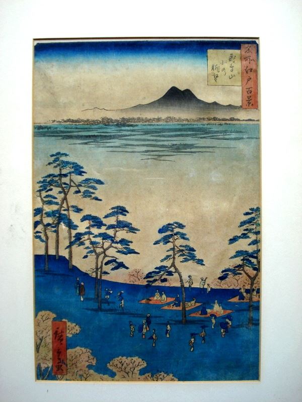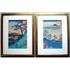 Pair of oriental hand colored lithographs - vibrant colors - minor staining to paper and matting.