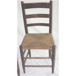 Pair of original paint decorated and stenciled rush bottom side chairs. Each measures 32" tall to top of back and 16 1/2" to seat.