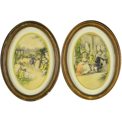This is a lovely set of prints that display accurately rendered figures full of action that are set in a classic Victorian setting. These pictures are in very good condition and show in crisp clarity the many details that the original artist so meticulously rendered. These prints are perfectly framed in a dark brown, oval wood frames that give an elegance to the pictures. These excellently priced prints are 7.25? x 5.25?.