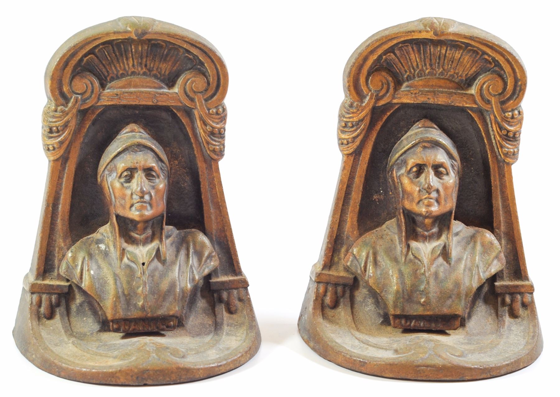 Pair of quality European bronze bookends, early 20th century, with portrait of Dante, height: 16 cm.