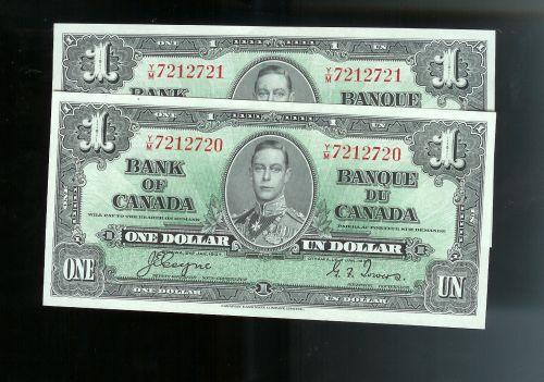 Pair of sequential notes. BC-21d 1937 $1 Coyne-Towers. Y/M7212720/721. Choice uncirculated. Bright and crisp notes!
