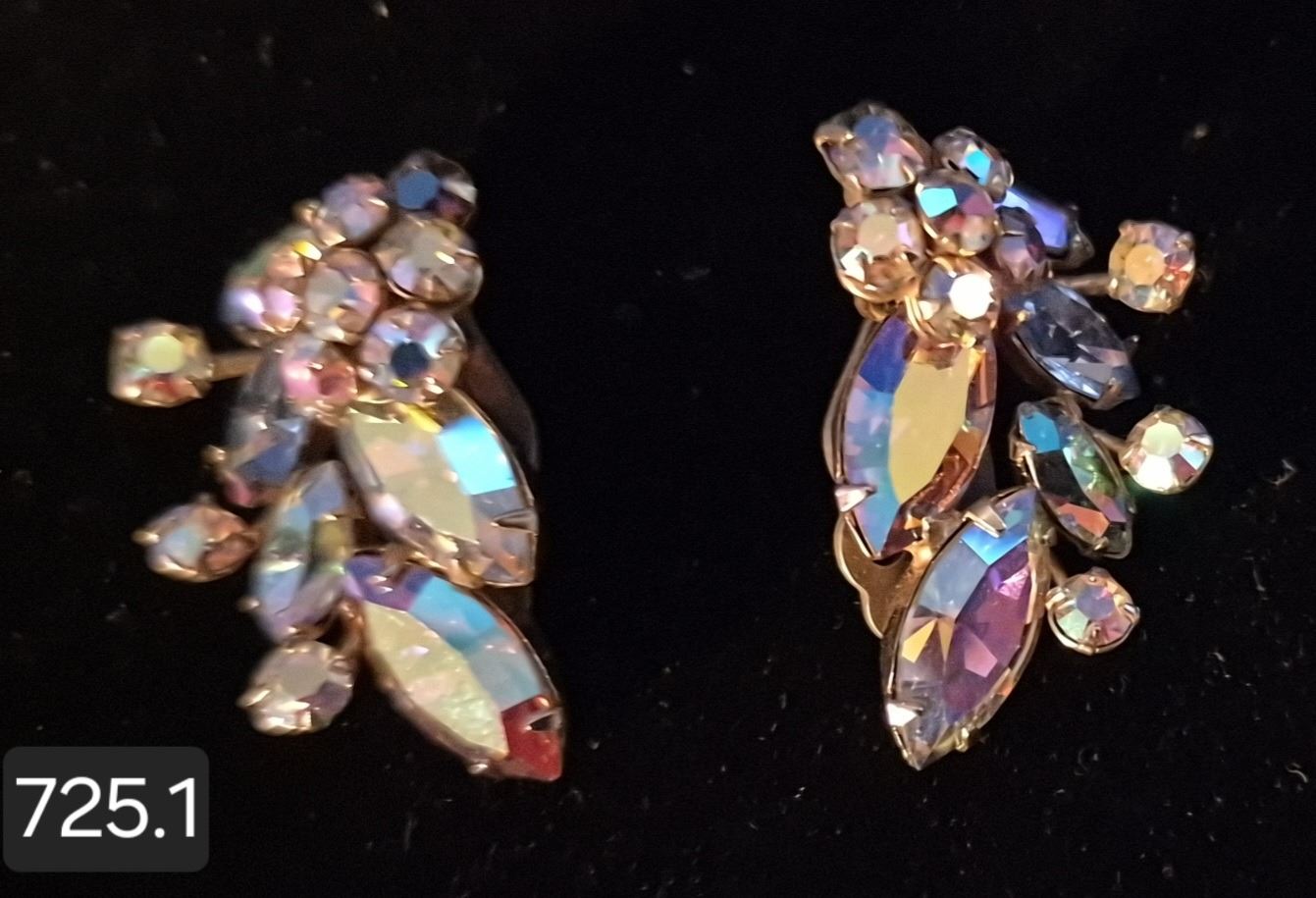 Pair of signed "Sherman" aurora borealis earings, Sworovski crystal