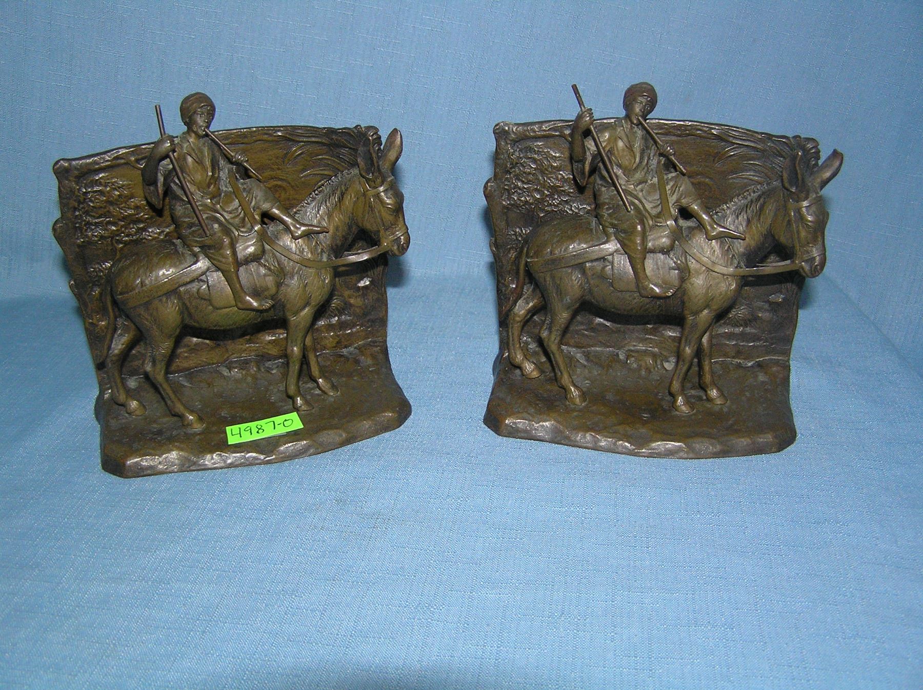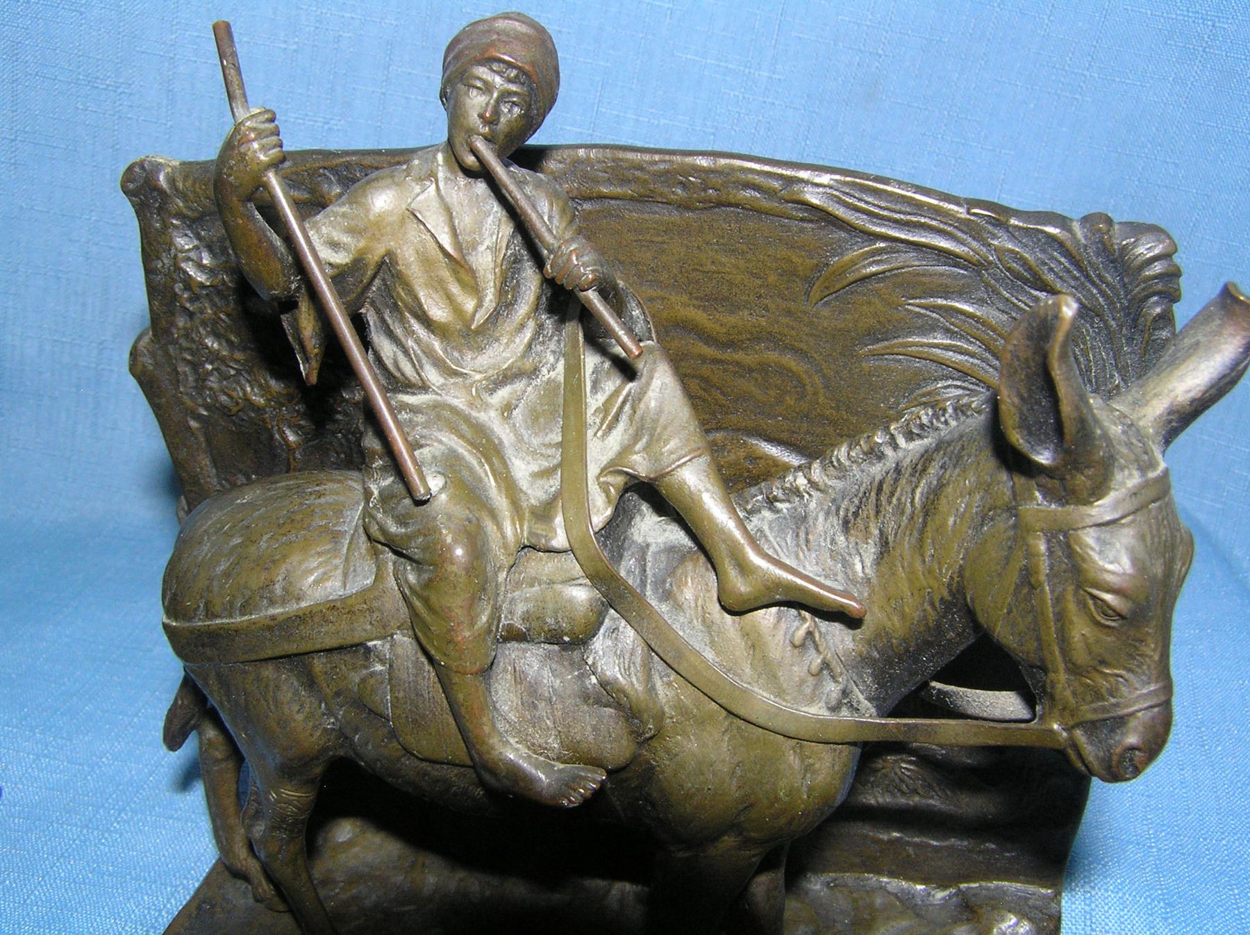 Pair of signed bronze Arabian figures riding a donkey by Heinrich W Hirschler 1863 to 1925 est. value $1200.00-$1300.00